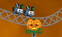 Izquierda/derecha = frenar/acelerar Haz que el Tren Fantasma vaya lo más rápido posible sin dañar a ninguno de los macabros pasajeros. Cuanto más amplias sean las sonrisas de las calabazas, mejor se lo estarán pasando.